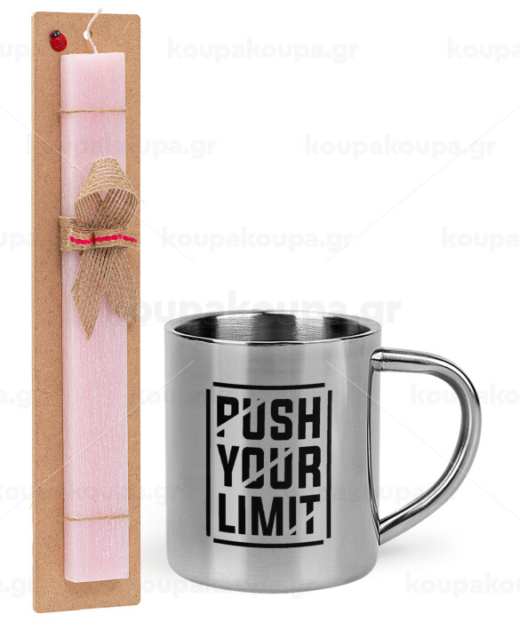 Push your limit, Easter Set, metallic thermal cup (300ml) & aromatic flat Easter candle (30cm) (PINK)