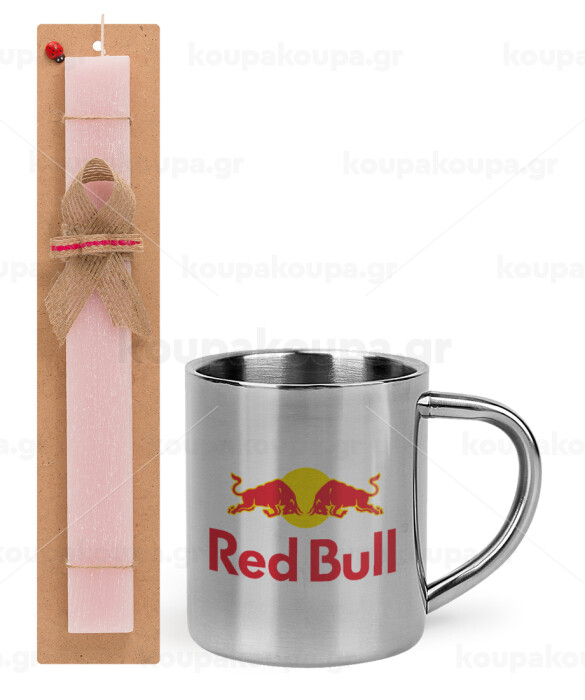 Redbull, Easter Set, metallic thermal cup (300ml) & aromatic flat Easter candle (30cm) (PINK)