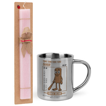 Tung Tung Tung Sahur, Easter Set, metallic thermal cup (300ml) & aromatic flat Easter candle (30cm) (PINK)