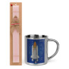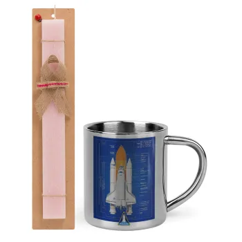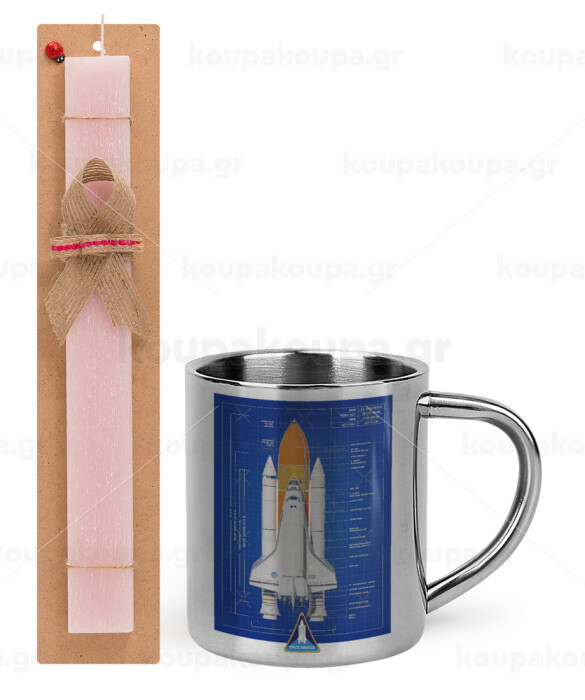 Nasa Space Shuttle, Easter Set, metallic thermal cup (300ml) & aromatic flat Easter candle (30cm) (PINK)