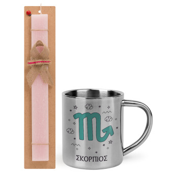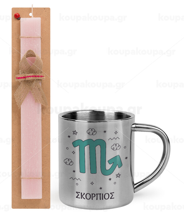 Ζώδια Σκορπιός, Easter Set, metallic thermal cup (300ml) & aromatic flat Easter candle (30cm) (PINK)