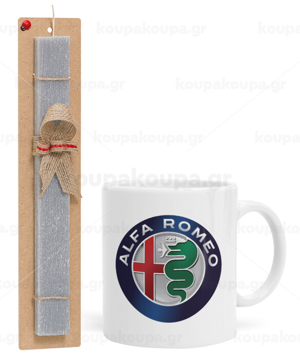 Alfa Romeo, Easter Set, Ceramic Cup (330ml) & Easter aromatic flat candle (30cm) (GRAY)
