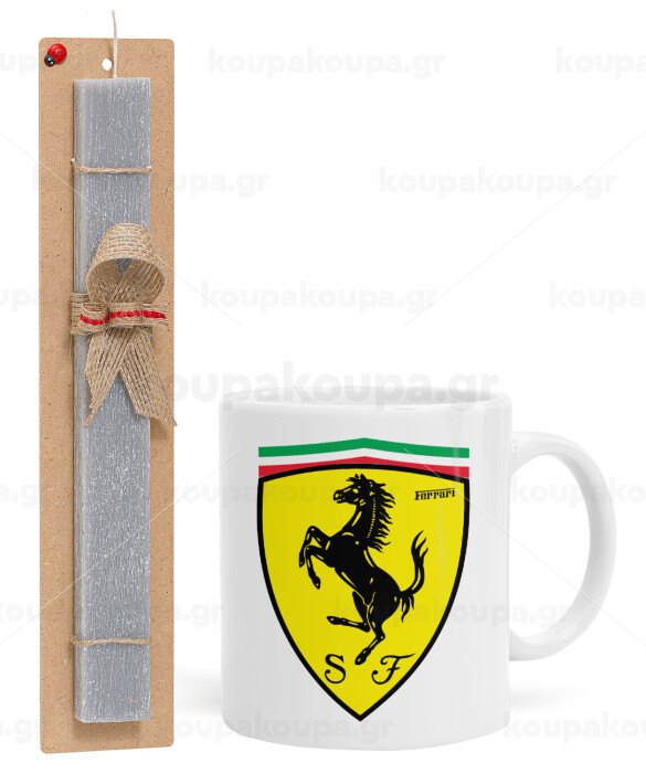 Ferrari, Easter Set, Ceramic Cup (330ml) & Easter aromatic flat candle (30cm) (GRAY)