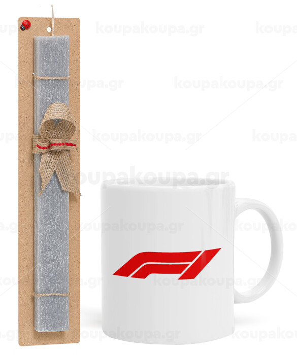Formula 1, Easter Set, Ceramic Cup (330ml) & Easter aromatic flat candle (30cm) (GRAY)