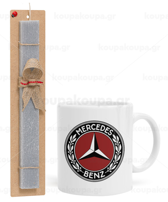 Mercedes vintage, Easter Set, Ceramic Cup (330ml) & Easter aromatic flat candle (30cm) (GRAY)
