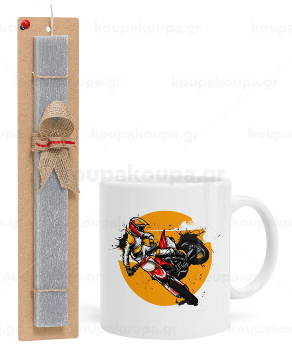 Motocross, Easter Set, Ceramic Cup (330ml) & Easter aromatic flat candle (30cm) (GRAY)