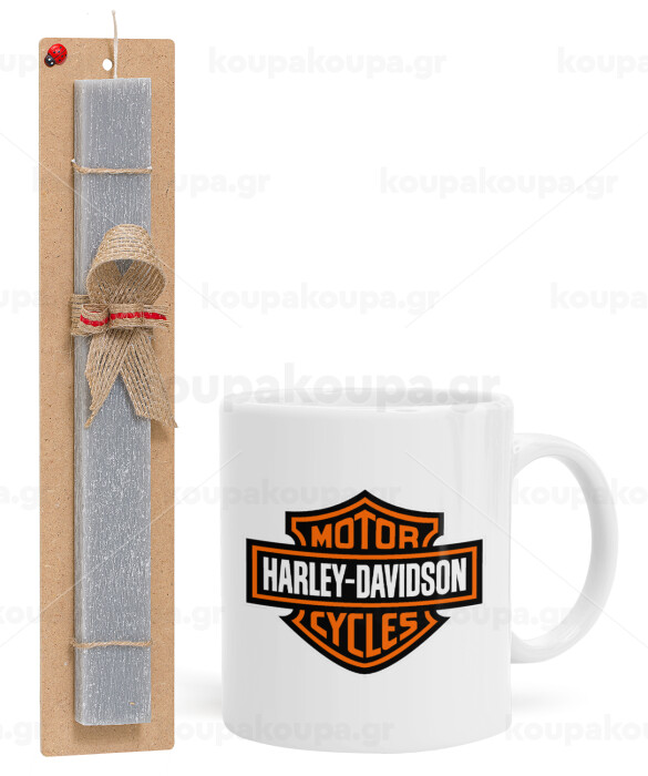 Motor Harley Davidson, Easter Set, Ceramic Cup (330ml) & Easter aromatic flat candle (30cm) (GRAY)