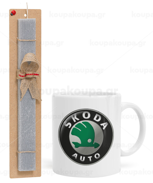 SKODA, Easter Set, Ceramic Cup (330ml) & Easter aromatic flat candle (30cm) (GRAY)