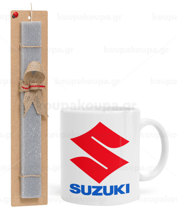 SUZUKI, Easter Set, Ceramic Cup (330ml) & Easter aromatic flat candle (30cm) (GRAY)