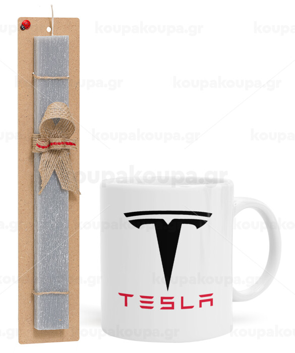 Tesla motors, Easter Set, Ceramic Cup (330ml) & Easter aromatic flat candle (30cm) (GRAY)
