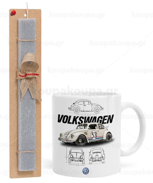 Volkswagen Beetle, Easter Set, Ceramic Cup (330ml) & Easter aromatic flat candle (30cm) (GRAY)