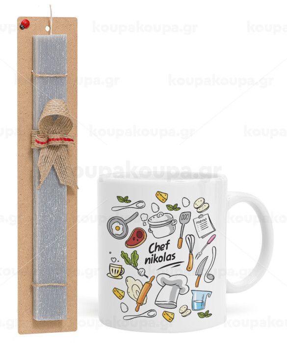Chef με όνομα, Easter Set, Ceramic Cup (330ml) & Easter aromatic flat candle (30cm) (GRAY)