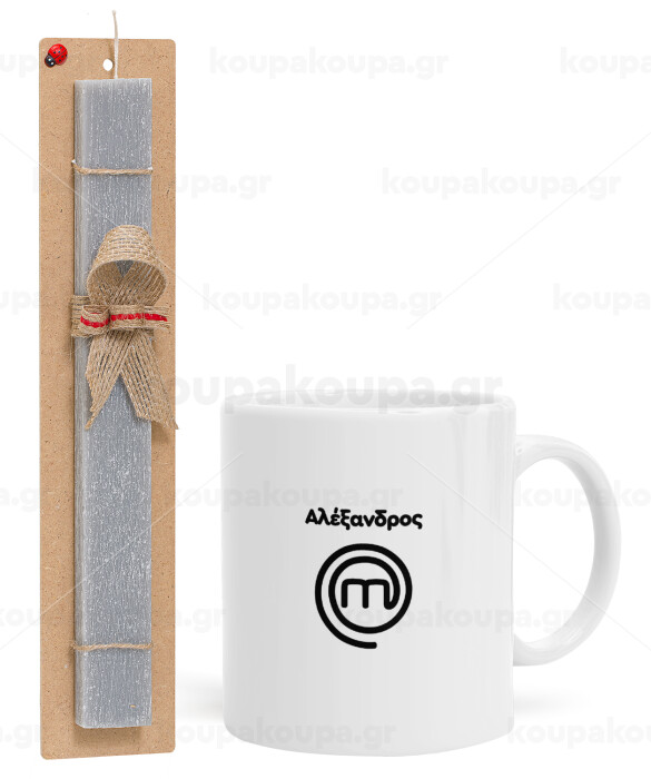 Master Chef Greece, Easter Set, Ceramic Cup (330ml) & Easter aromatic flat candle (30cm) (GRAY)