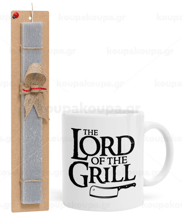 The Lord of the Grill, Easter Set, Ceramic Cup (330ml) & Easter aromatic flat candle (30cm) (GRAY)
