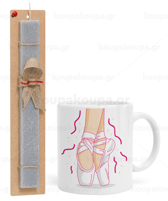 Πουεντ, Easter Set, Ceramic Cup (330ml) & Easter aromatic flat candle (30cm) (GRAY)