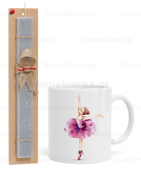 Ballerina watercolor, Easter Set, Ceramic Cup (330ml) & Easter aromatic flat candle (30cm) (GRAY)