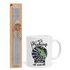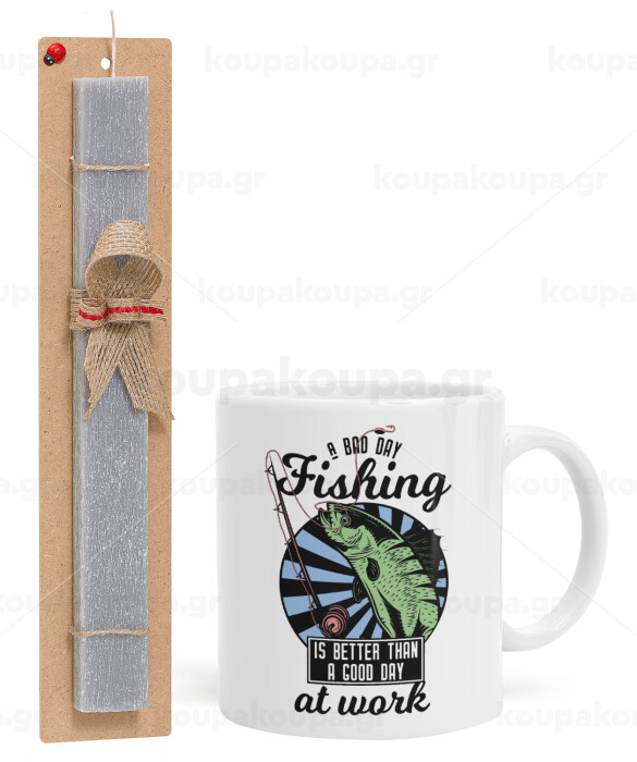 A bad day FISHING is better than a good day at work, Easter Set, Ceramic Cup (330ml) & Easter aromatic flat candle (30cm) (GRAY)