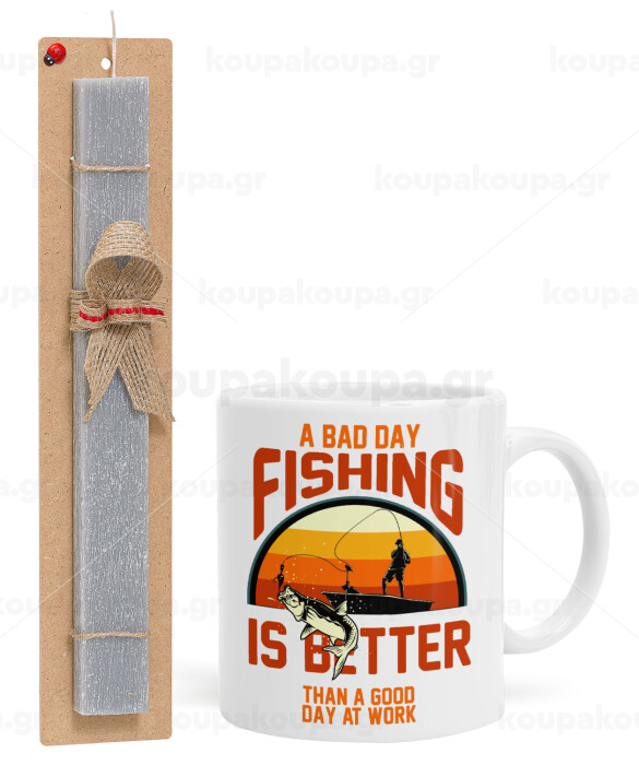 A bad day FISHING is better than a good day at work, Easter Set, Ceramic Cup (330ml) & Easter aromatic flat candle (30cm) (GRAY)