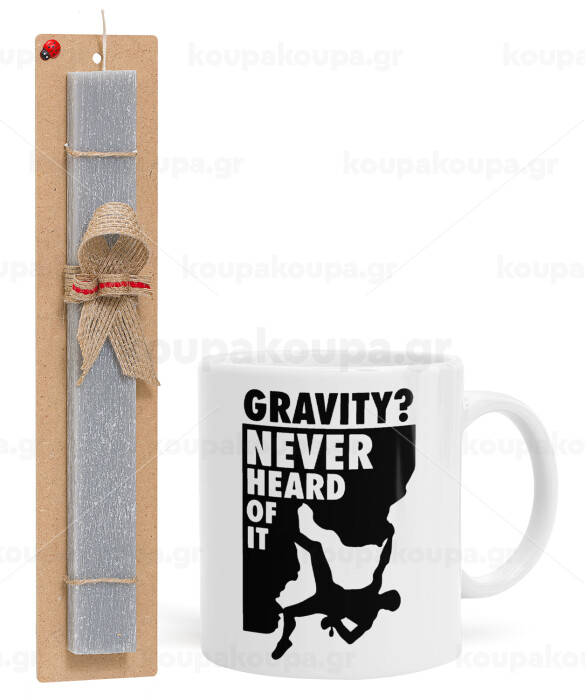 Gravity? Never heard of that!, Easter Set, Ceramic Cup (330ml) & Easter aromatic flat candle (30cm) (GRAY)
