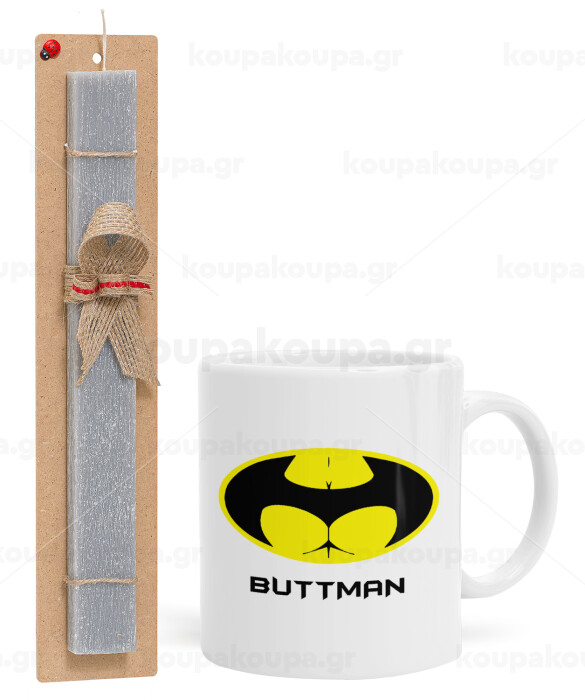 Buttman, Easter Set, Ceramic Cup (330ml) & Easter aromatic flat candle (30cm) (GRAY)