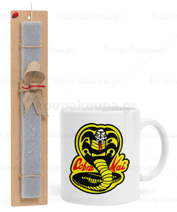 Cobra Kai Yellow, Easter Set, Ceramic Cup (330ml) & Easter aromatic flat candle (30cm) (GRAY)