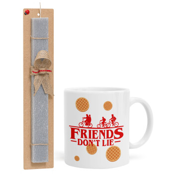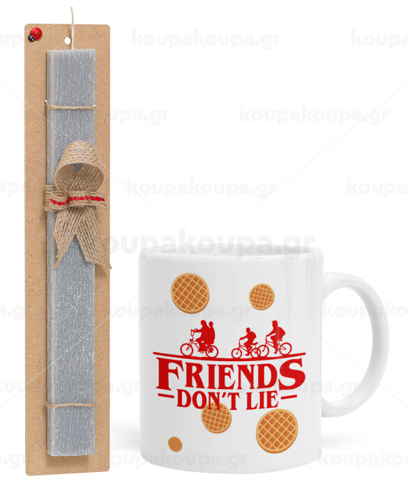 Friends Don't Lie, Stranger Things, Easter Set, Ceramic Cup (330ml) & Easter aromatic flat candle (30cm) (GRAY)