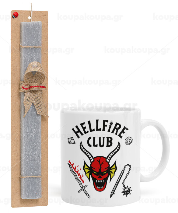 Hellfire CLub, Stranger Things, Easter Set, Ceramic Cup (330ml) & Easter aromatic flat candle (30cm) (GRAY)