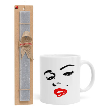 Marilyn Monroe, Easter Set, Ceramic Cup (330ml) & Easter aromatic flat candle (30cm) (GRAY)