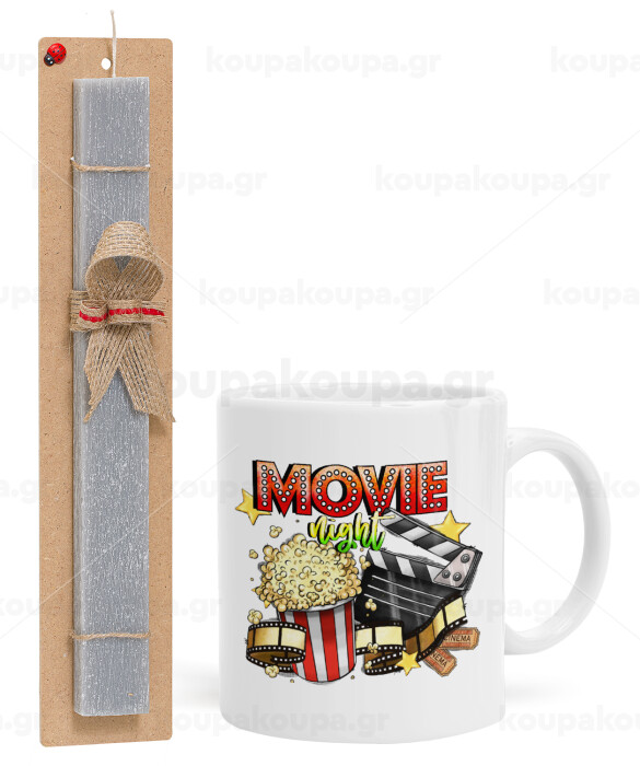 Movie night, Easter Set, Ceramic Cup (330ml) & Easter aromatic flat candle (30cm) (GRAY)