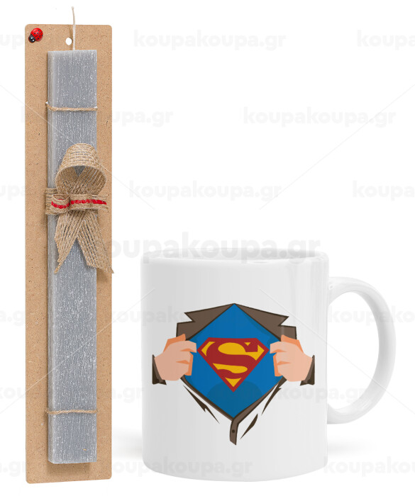 Superman hands, Easter Set, Ceramic Cup (330ml) & Easter aromatic flat candle (30cm) (GRAY)