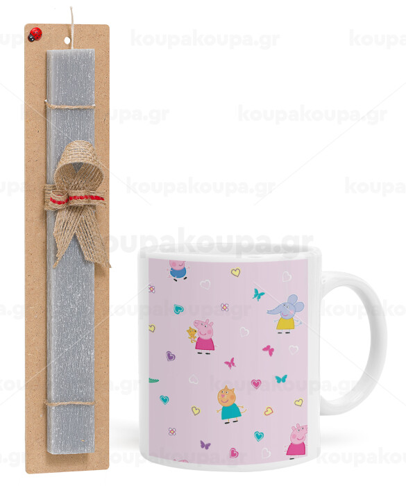 Πέππα το γουρουνάκι και οι φίλοι της, Easter Set, Ceramic Cup (330ml) & Easter aromatic flat candle (30cm) (GRAY)