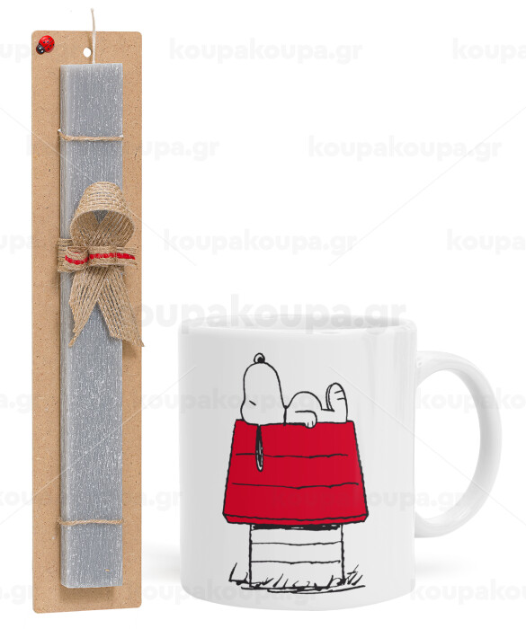 Το σπίτι του snoopy, Easter Set, Ceramic Cup (330ml) & Easter aromatic flat candle (30cm) (GRAY)