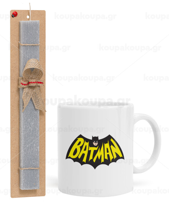 Batman classic logo, Easter Set, Ceramic Cup (330ml) & Easter aromatic flat candle (30cm) (GRAY)