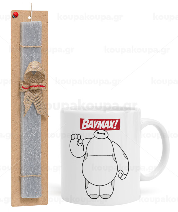 Baymax hi, Easter Set, Ceramic Cup (330ml) & Easter aromatic flat candle (30cm) (GRAY)