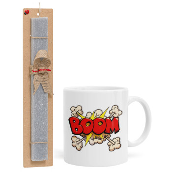 BOOM!!!, Easter Set, Ceramic Cup (330ml) & Easter aromatic flat candle (30cm) (GRAY)