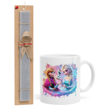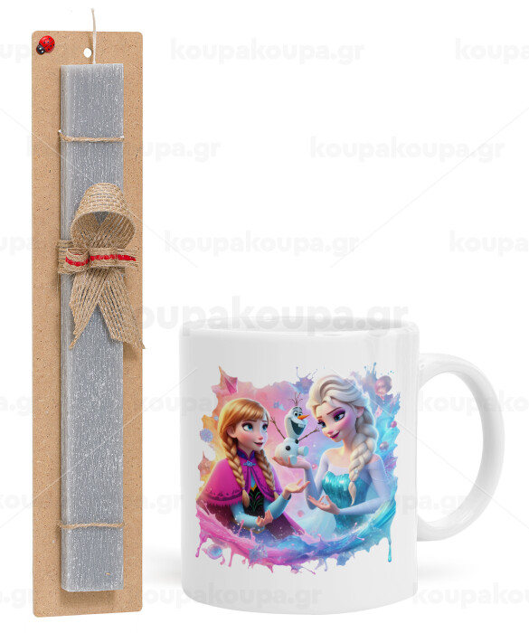 Elsa & Anna Princess, Easter Set, Ceramic Cup (330ml) & Easter aromatic flat candle (30cm) (GRAY)