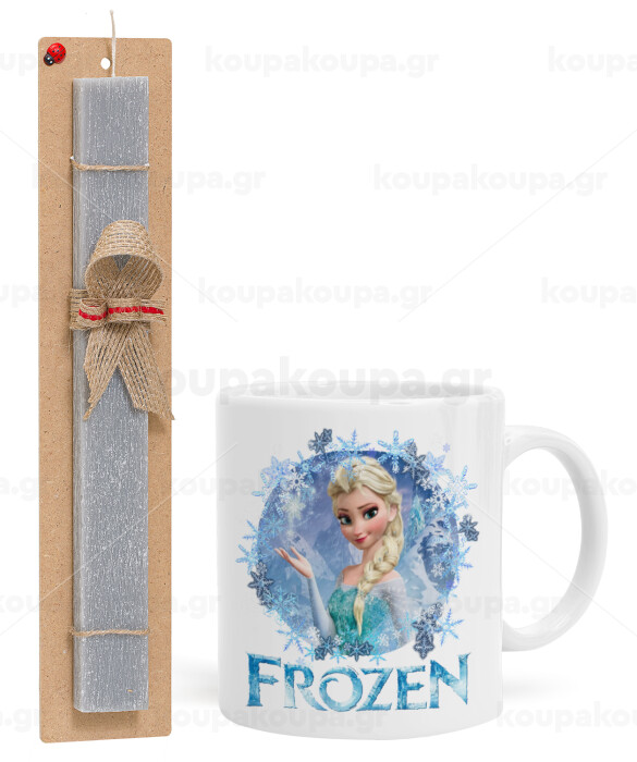 Frozen Elsa, Easter Set, Ceramic Cup (330ml) & Easter aromatic flat candle (30cm) (GRAY)