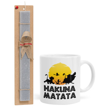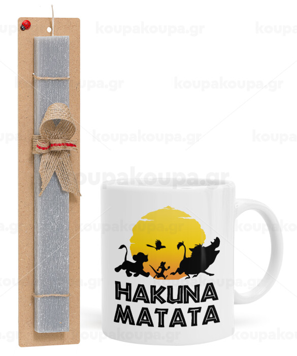 Hakuna Matata, Easter Set, Ceramic Cup (330ml) & Easter aromatic flat candle (30cm) (GRAY)