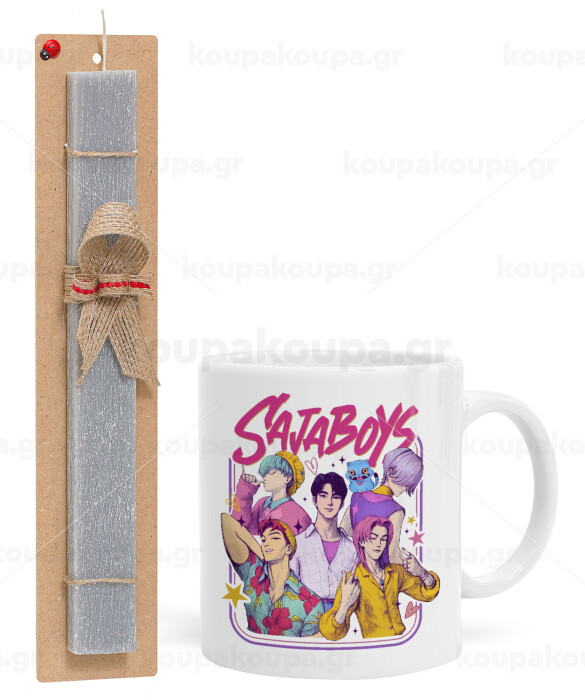 Huntrix Saja Boys, Easter Set, Ceramic Cup (330ml) & Easter aromatic flat candle (30cm) (GRAY)
