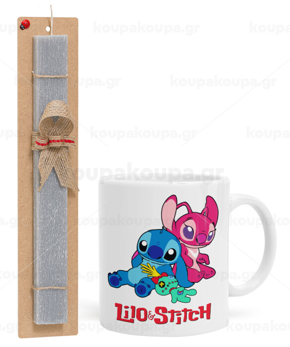 Lilo & Stitch, Easter Set, Ceramic Cup (330ml) & Easter aromatic flat candle (30cm) (GRAY)