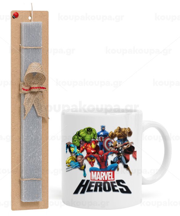 MARVEL heroes, Easter Set, Ceramic Cup (330ml) & Easter aromatic flat candle (30cm) (GRAY)