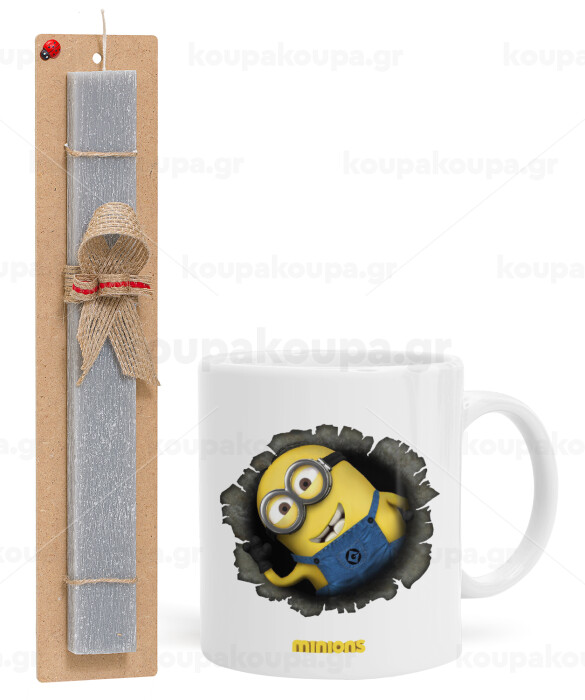 Minions hi, Easter Set, Ceramic Cup (330ml) & Easter aromatic flat candle (30cm) (GRAY)