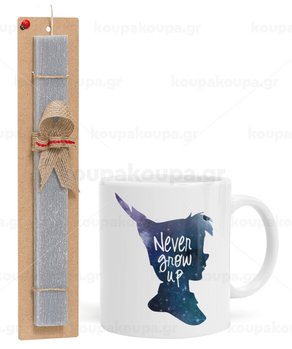 Never Grow UP, Easter Set, Ceramic Cup (330ml) & Easter aromatic flat candle (30cm) (GRAY)
