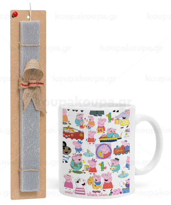 Peppa pig Characters, Easter Set, Ceramic Cup (330ml) & Easter aromatic flat candle (30cm) (GRAY)