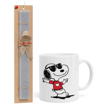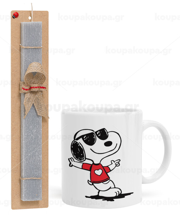 Snoopy καρδούλα, Easter Set, Ceramic Cup (330ml) & Easter aromatic flat candle (30cm) (GRAY)