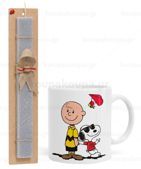 Snoopy & Joe, Easter Set, Ceramic Cup (330ml) & Easter aromatic flat candle (30cm) (GRAY)