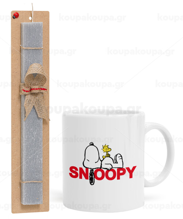 Snoopy sleep, Easter Set, Ceramic Cup (330ml) & Easter aromatic flat candle (30cm) (GRAY)