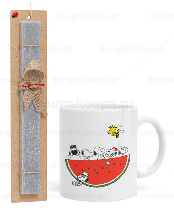 Snoopy summer, Easter Set, Ceramic Cup (330ml) & Easter aromatic flat candle (30cm) (GRAY)