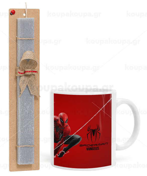 Spiderman, Easter Set, Ceramic Cup (330ml) & Easter aromatic flat candle (30cm) (GRAY)