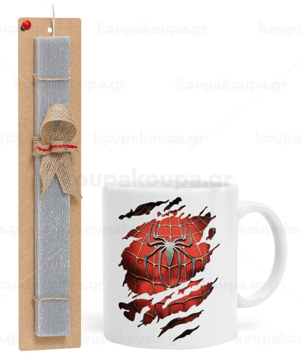 Spiderman cracked, Easter Set, Ceramic Cup (330ml) & Easter aromatic flat candle (30cm) (GRAY)